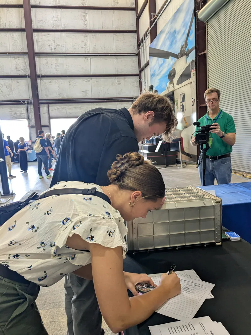 Before being sent to the International Space Station, HUNCH students get the rare and meaningful opportunity to sign the stowage lockers they helped build. It’s a simple gesture with a huge impact: a physical mark of their hard work, pride, and contribution to space exploration, one that gets to take its journey to station.